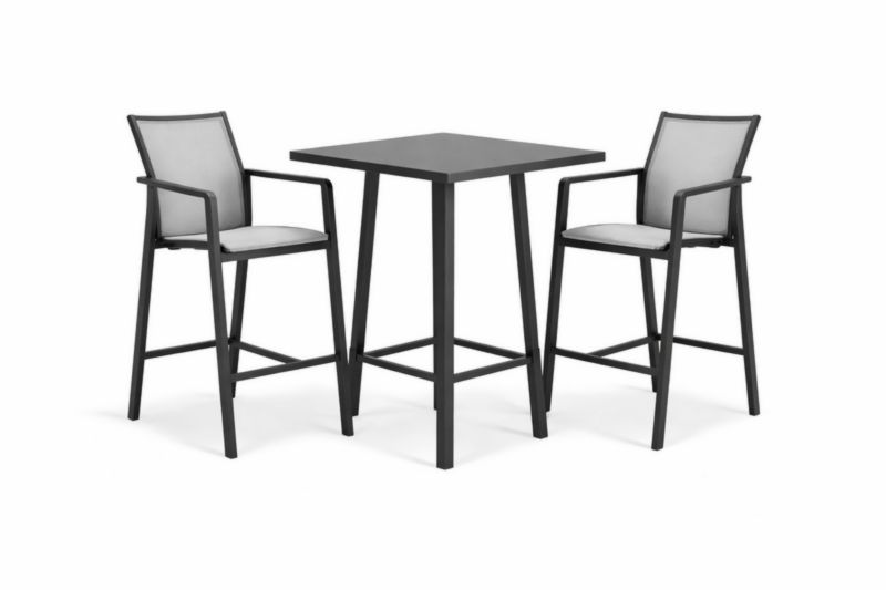 Set Tavolo da Bar in Alluminio con 2 Sedie in Tessuto Nero e Grigio