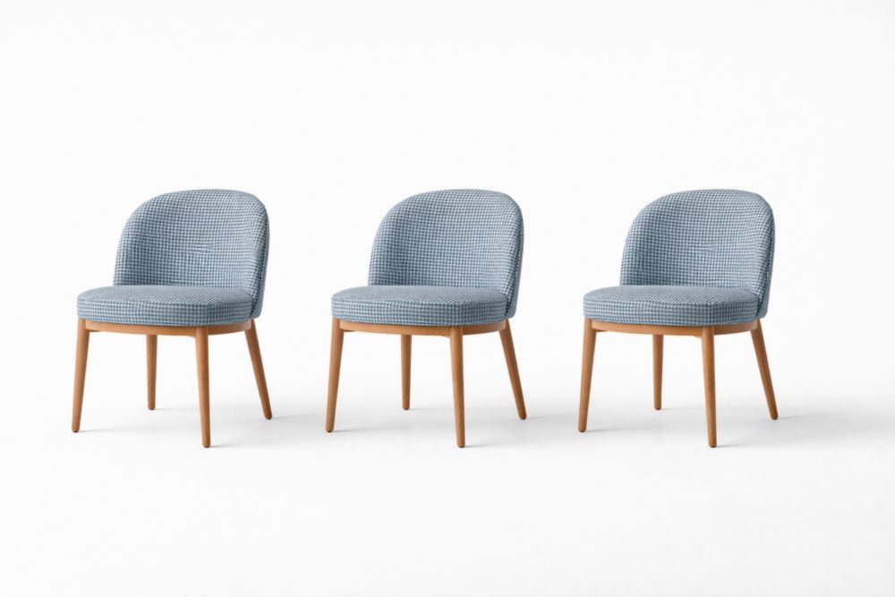 Set di 3 sedie da pranzo in tessuto con gambe in legno