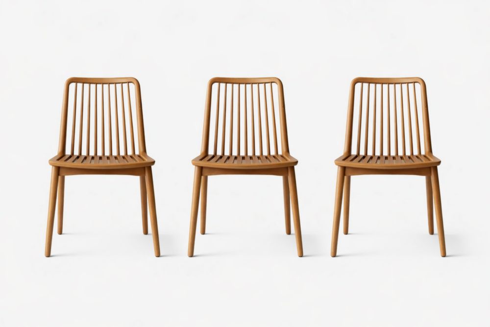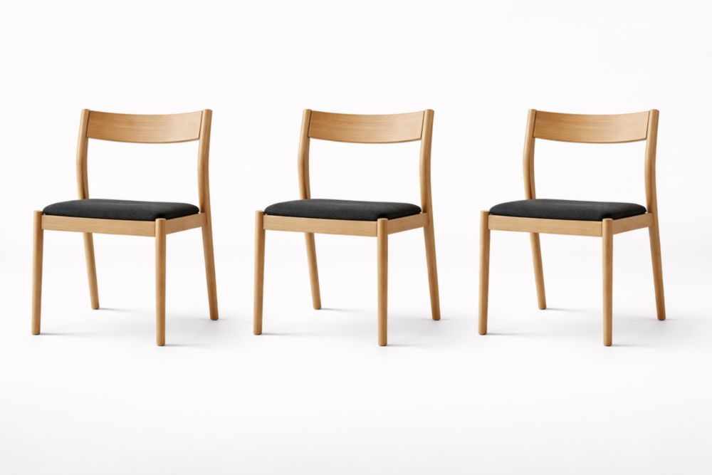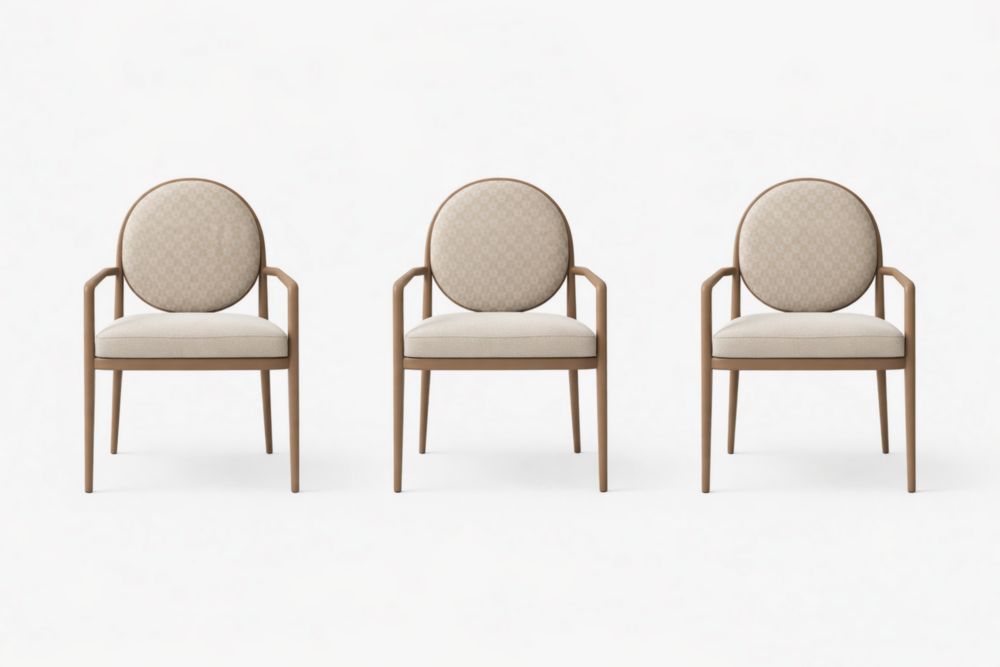 Set di 3 sedie in legno con schienale tondo e seduta imbottita