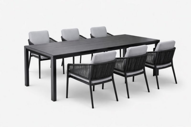 Set Tavolo da Pranzo Rettangolare con 6 Sedie in Alluminio Grigio Nero