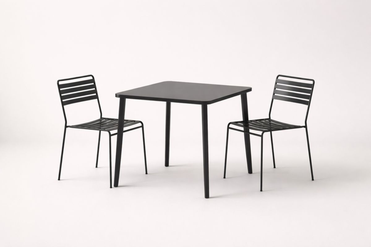 Set da pranzo quadrato con 2 sedie in metallo verniciato nero 80cm