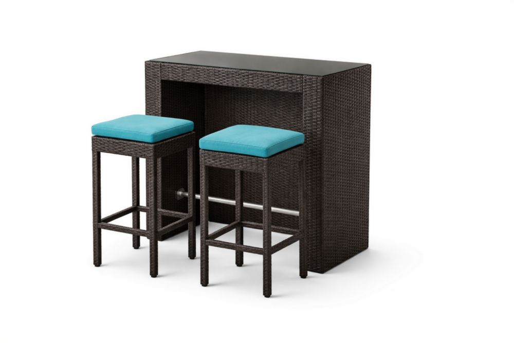 Set Bar da Esterno Polyrattan Vetro Temperato Blu 3 Pezzi