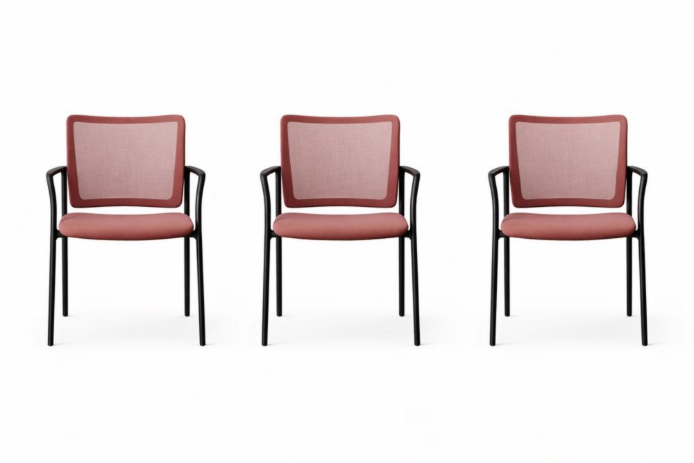 Set di 3 sedie con struttura in metallo e schienale in rete rosa