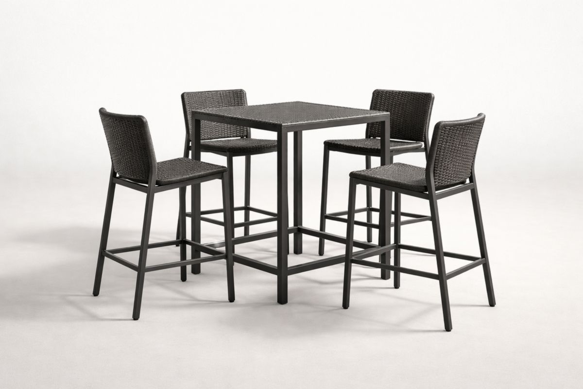 Set tavolo alto e 4 sgabelli in metallo e polyrattan Nero 70x70 cm